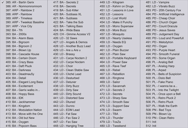 - 126 older bonus presets (from the previous bank)